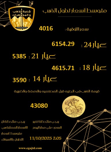 سجلت أسعار الذهب، ارتفاع ملحوظ في منتصف تعاملات اليوم السبت، حسبما ذكرت الشعبة العامة للذهب والمجوهرات بالاتحاد العام للغرف التجارية.
