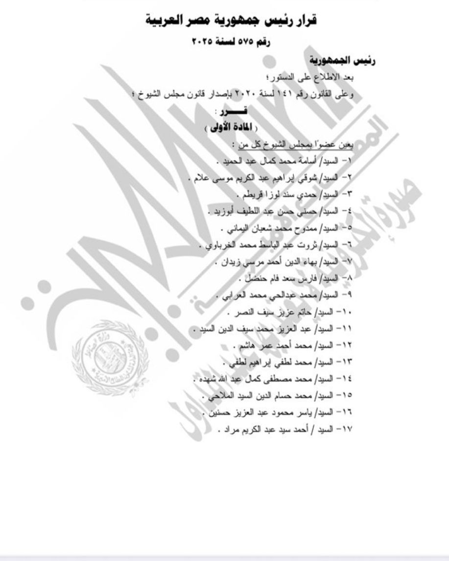ننشر أسماء المعينين بمجلس الشيوخ