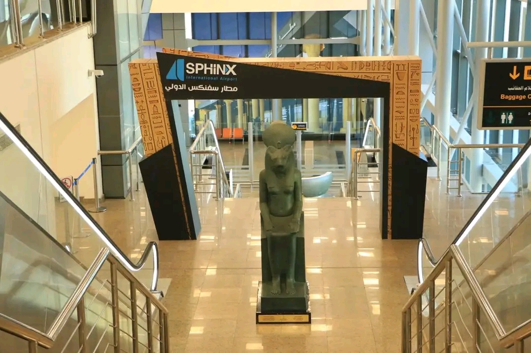 ويُعد مطار سفنكس الدولي البوابة الجوية الأقرب إلى موقع المتحف، حيث تم رفع كفاءة الصالات ومناطق الخدمة، وتحديث الأنظمة الأمنية والتكنولوجية، مع إبراز الهوية البصرية المستوحاة من الحضارة المصرية القديمة في التصميمات الداخلية للمطار، كما تم وضع شاشات ضخمة داخل صالة السفر ولأول مرة في المطارات المصرية للتسهيل علي الراكب لمعرفة رحلته داخل وخارج صالات السفر، بالإضافة إلى أنه تم تطوير صالة كبار الزوار وتخصيص ترمك للطائرات الرسمية والخاصة، لضمان إنسيابية حركة الطائرات واستقبال ضيوف مصر في أجواء متميزه تليق بقيمة الحدث العالمي.