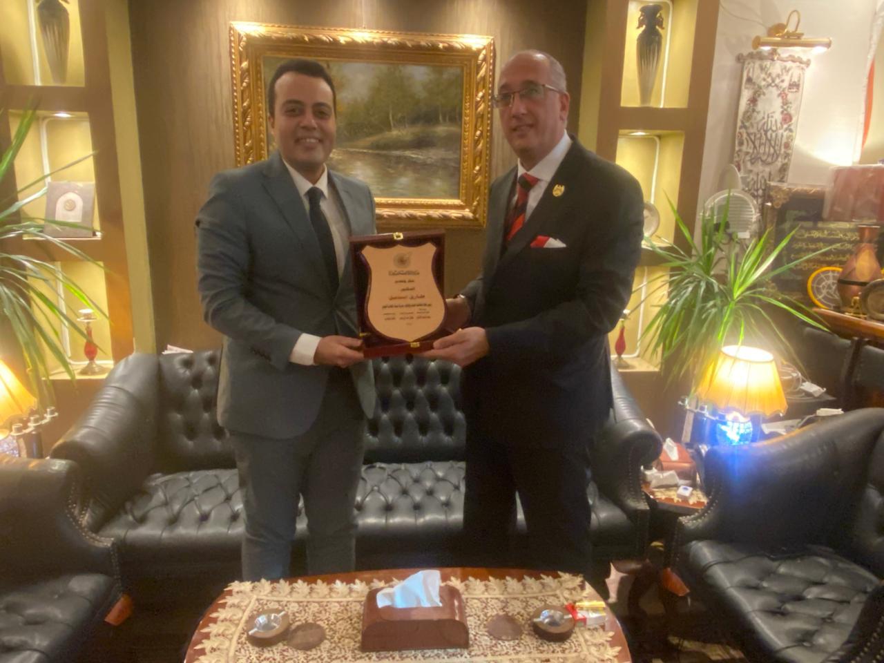 «الصحفيين» تهدي درع النقابة لشركة ميناء القاهرة الجوي تقديراً لتعاونها البنّاء