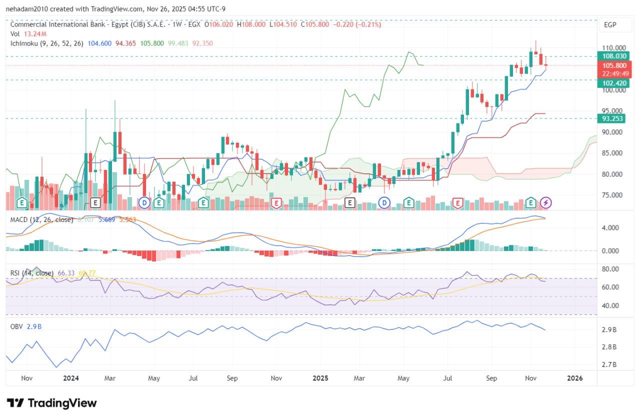 مناطق الدعم الحرجة: يجب على المستثمر قصير الأجل مراقبة مناطق الدعم الفنية القريبة، خاصة 105.80 جنيه مصري (خط الأساس) ومنطقة الدعم الأقوى حول 102.40 جنيه مصري (حافة سحابة الإيشيموكو). الارتداد من هذه المستويات يؤكد انتهاء التصحيح.