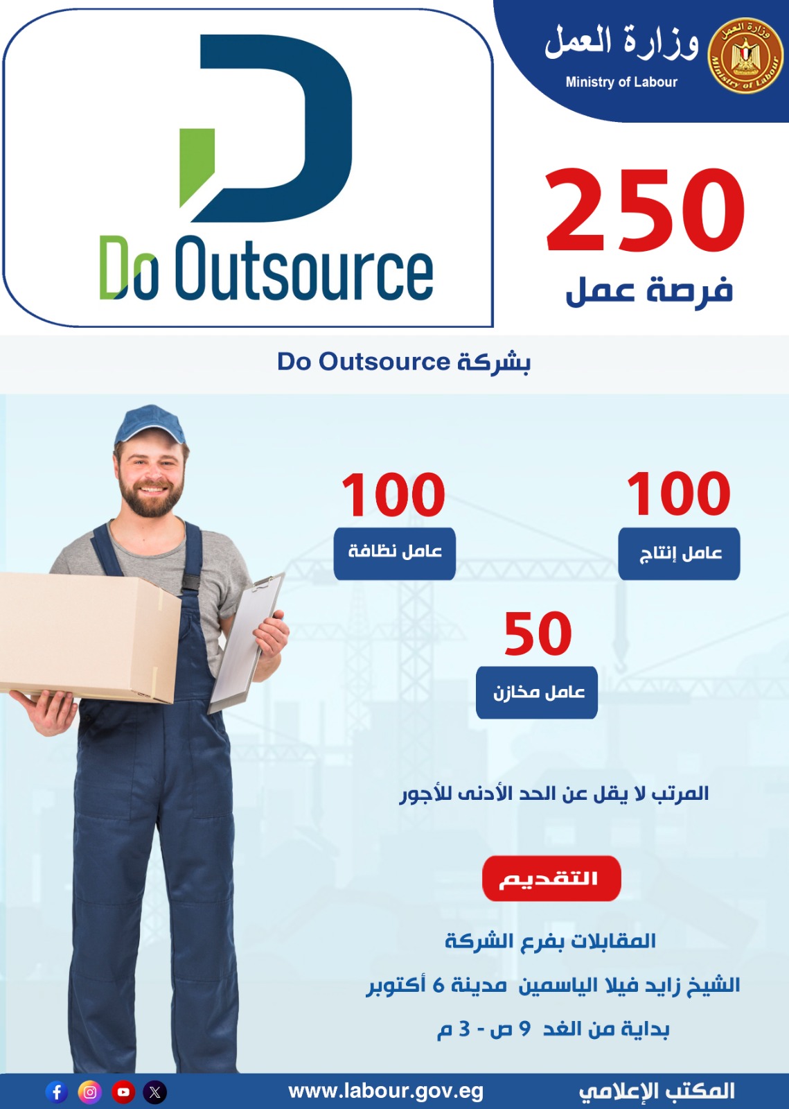 وفي سياق متصل أعلنت وزارة العمل – بالتعاون مع مديرية قوى عاملة الجيزة والإدارة العامة للتشغيل – عن توفير 250 فرصة عمل جديدة بشركة “دو أوتسورس”… وأكدت الوزارة أن هذه الخطوة تأتي ضمن جهودها المستمرة لربط الباحثين عن العمل باحتياجات سوق العمل الفعلية، وتوفير فرص عمل في بيئات مناسبة ومستقرة، خاصة في الشركات العاملة في السوق المصري.