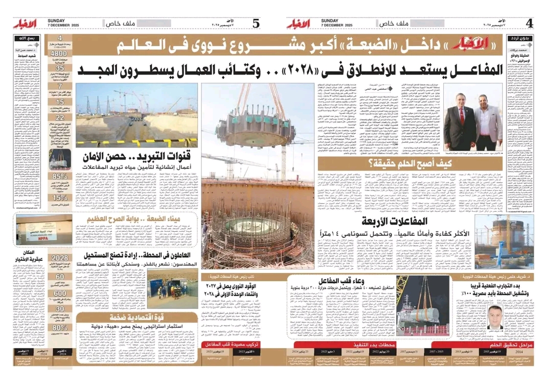 وتابع، أنّ المشروع يشارك فيه آلاف العاملين من القطاعين الخاص والعام، مؤكداً أن كل هؤلاء لهم الحق في الفخر بما قاموا به من جهود. كما أعرب عن رغبته في زيارة المفاعل لتصويره والتعرف عن قرب على تفاصيل المشروع، مشيراً إلى أن هذا العمل الصحفي والتغطية الإعلامية يمثلان دوراً وطنياً مهماً لتوثيق الإنجاز القومي الكبير.