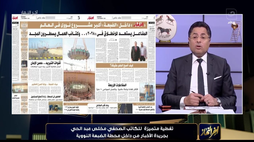 وأضاف أبو بكر، مقدم برنامج آخر النهار، عبر قناة النهار، أنّ المشروع شهد تغطية صحفية متميزة من قبل الكاتب الصحفي مخلص عبد الحي، الذي أفرد صفحات واسعة لتوضيح مراحل المشروع وأهمية التجارب الفعلية والمعدات التقنية المستخدمة، بما يعكس مستوى الأمان والكفاءة العالمية للمفاعلات الأربعة التي يمكنها تحمل تسونامي بارتفاع 14 متراً.