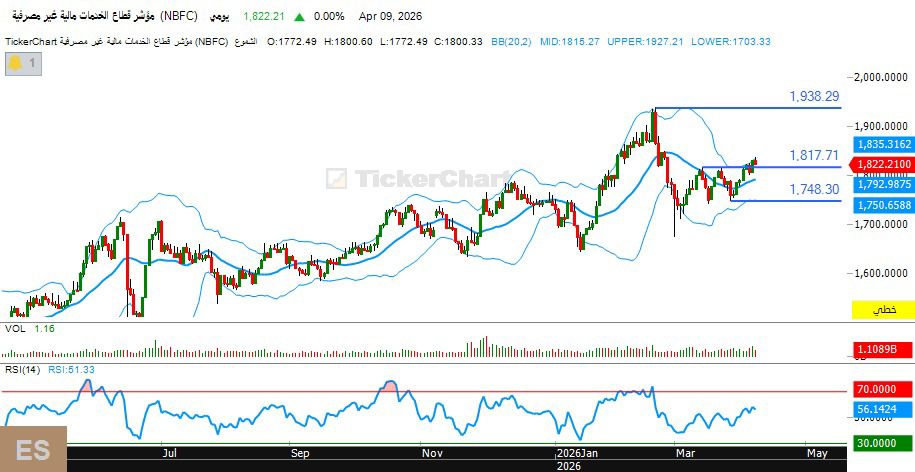 اكد “إسلام خميس”، عضو الجمعية المصرية للمحللين الفنين و عضو الاتحاد الدولي للمحللين الفنين و مدير قسم التحليل الفني في شركه “الصك” لتداول الأوراق المالية، فى تحليله الفني لقطاع “الخدمات المالية غير المصرفية”، إن مؤشر قطاع الخدمات مالية غير المصرفية عند مستوى 1822 نقطة، وبالنظر إلى الأداء الفني للمؤشر على الإطار الزمني اليومي نلاحظ أن المؤشر يتحرك داخل اتجاه عام صاعد.