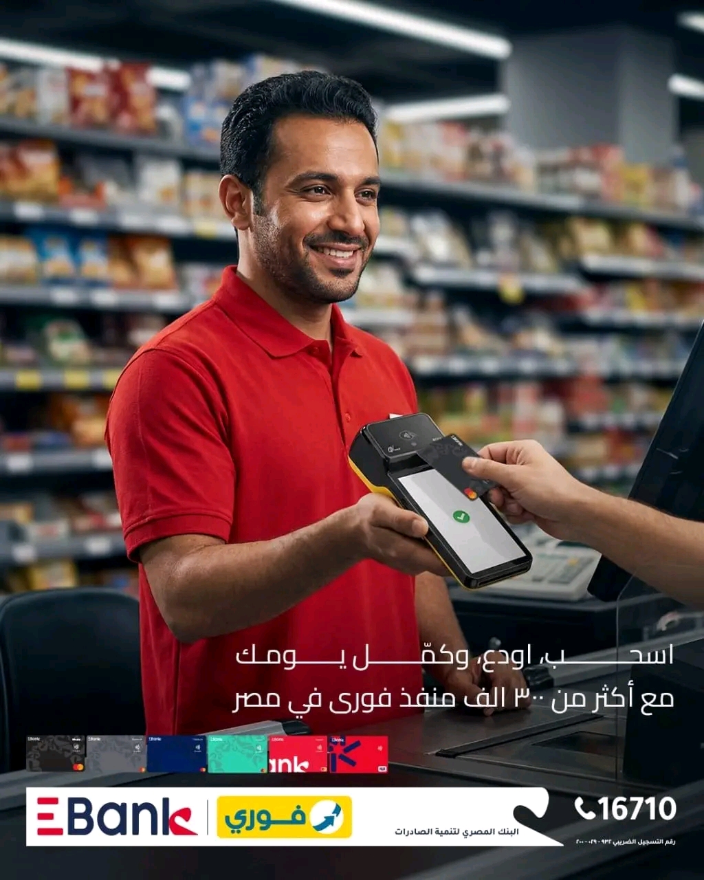 أعلن البنك المصري لتنمية الصادرات بالتعاون مع EBank، إتاحة إمكانية السحب والإيداع النقدي بسهولة لعملاء البنك باستخدام بطاقات EBank المختلفة، وذلك من خلال شبكة واسعة تضم أكثر من 300 ألف منفذ فوري منتشرة في مختلف أنحاء الجمهورية.